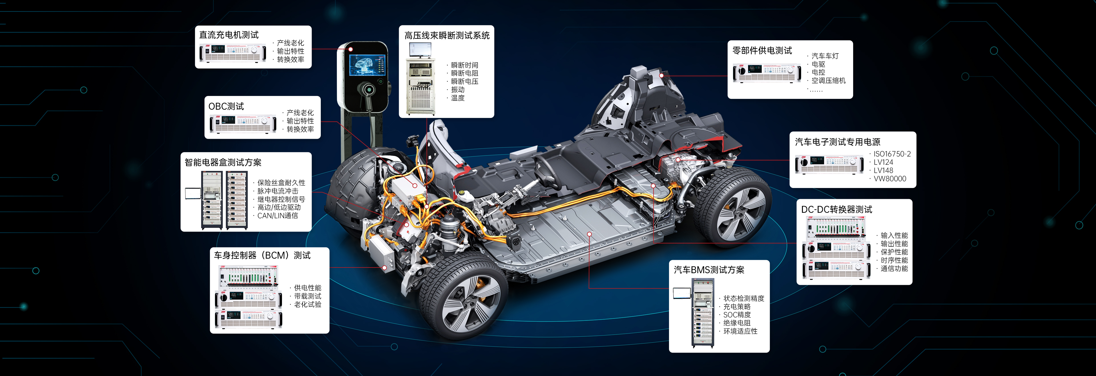 NGI提供行業(yè)最完整的汽車電子解決方案。不管是充電樁、車載OBC、智能電器盒,還是汽車BMS,NGI均能提供相關(guān)解決方案。