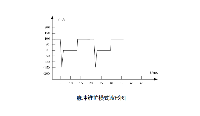 脈沖維護(hù)模式測(cè)試:維護(hù)模塊改變脈沖電流大小和方向,并適當(dāng)控制脈沖寬度和占空比,對(duì)電池模擬器進(jìn)行mA級(jí)別微小電流充放電,電流變化上升下降時(shí)間為ms級(jí)。