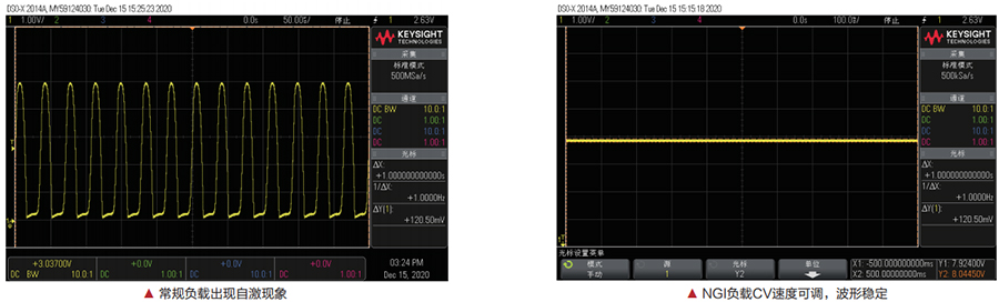 CV環(huán)路反饋速度可調(diào) 不同電源應(yīng)用領(lǐng)域要求不同電壓響應(yīng)速度。當(dāng)負(fù)載與電源響應(yīng)速度不匹配時會引起參數(shù)波動降低測量精度,甚至導(dǎo)致數(shù)值震蕩測試失敗。