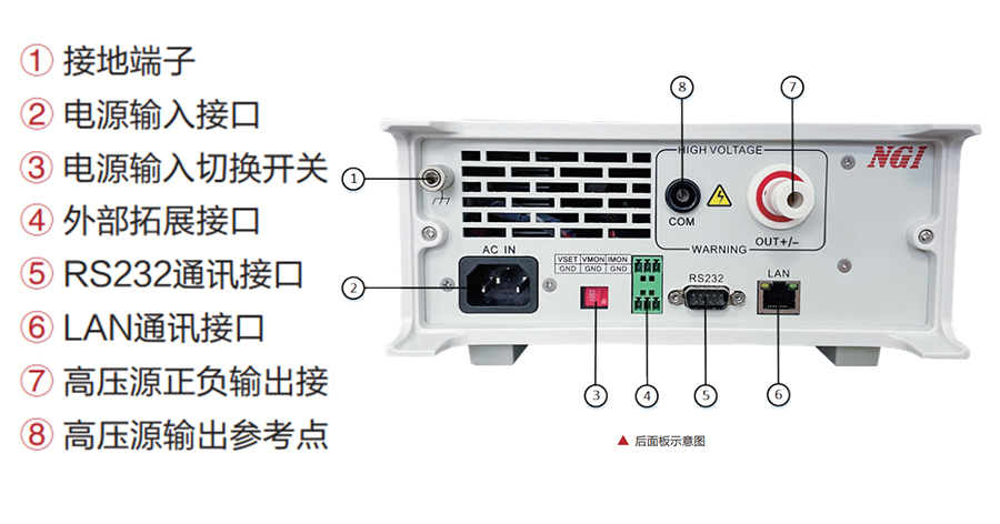 易于構建高壓測試系統(tǒng)N3200系列提供后出線高壓輸出接口、模擬編程接口、電壓電流監(jiān)控接口,通訊支持LAN、RS232,支持SCPI指令,還可以配合NE101通訊轉換器支持IEEE-488標準的系統(tǒng)。N3200系列強大的接口能力,可以輕松創(chuàng)建自動化的高壓測試系統(tǒng)進行程控高壓,這也將進一步提高測試安全性。