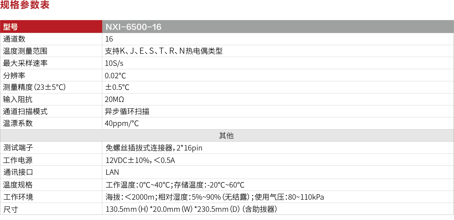 NXI-6500-16是一款多通道高集成度的熱電偶溫度采集卡,支持K、J、E、S、T、R、N等熱電偶傳感器,并支持多通道輪詢采集。用戶使用單張板卡即可同時(shí)采集16路溫度數(shù)據(jù),可有效降低系統(tǒng)集成空間和投資成本。NXI-6500-16既可在NXI模塊化儀器測(cè)控機(jī)箱中使用,也可單獨(dú)供電使用,適用于各種場(chǎng)景下的多點(diǎn)溫度數(shù)據(jù)采集和測(cè)量。